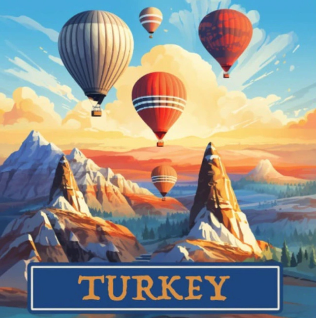这并没有错,但当你把它与主要展示风景如画的其他邮票进行比较时,就会觉得相当有趣。对于中国,邮票上是一只极其稀有的大熊猫,还有竹子和中国茶。虽然土耳其以其海滩而闻名,但人工智能对这个国家的解读展示了一个迷人的不同面貌。邮票上是位于土耳其中部卡帕多奇亚的著名热气球,这是一个以热气球之旅而受欢迎的世界遗产地。