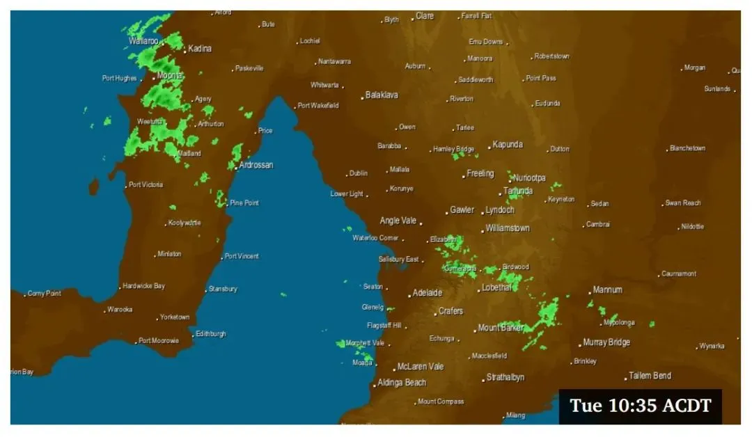周二,阿德、Glenelg 和 Noarlunga的最高气温预计将降至18℃。凉爽的天气将伴随着阵雨和时速35 – 45公里的西风,到下午将转为时速25 – 40公里的西南风。Elizabeth的气温略高,最高可达19℃,而Mount Barker将是该州最凉爽的地区之一,最高气温将降至16℃。周三,阿德、Glenelg和Noarlunga的气温将继续下降,气象局预计气温为15℃,上午晚些时候和下午可能会有中等几率的阵雨。