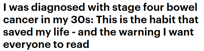 我有两次出血性腹泻,医生告诉我还太年轻,不可能得癌症。为了做结肠镜检查,打破只有老年人才会得癌症的教条,这是一场斗争。