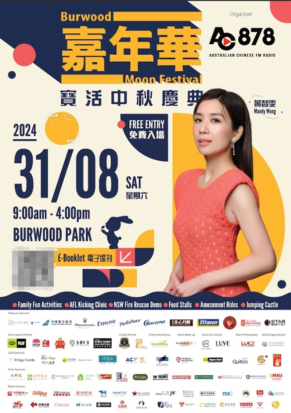 悉尼最强中秋家庭同乐日《2024宝活中秋嘉年华》将于8月31日(星期六)上午9时至下午4时在悉尼宝活公园(Burwood Park)盛大举行。今年嘉年华内容比去年更丰富,预料将突破已往三万人次入场纪录。大会增设了新州消防和救援局(FRNSW)的消防车打卡及火警演示节目,更特邀澳洲足球联盟(AFL)加盟一齐庆中秋。主办方一如既往邀请香港影视红星出席表演,到时能演擅舞的女神黄智雯会和澳洲观众近距离接触。