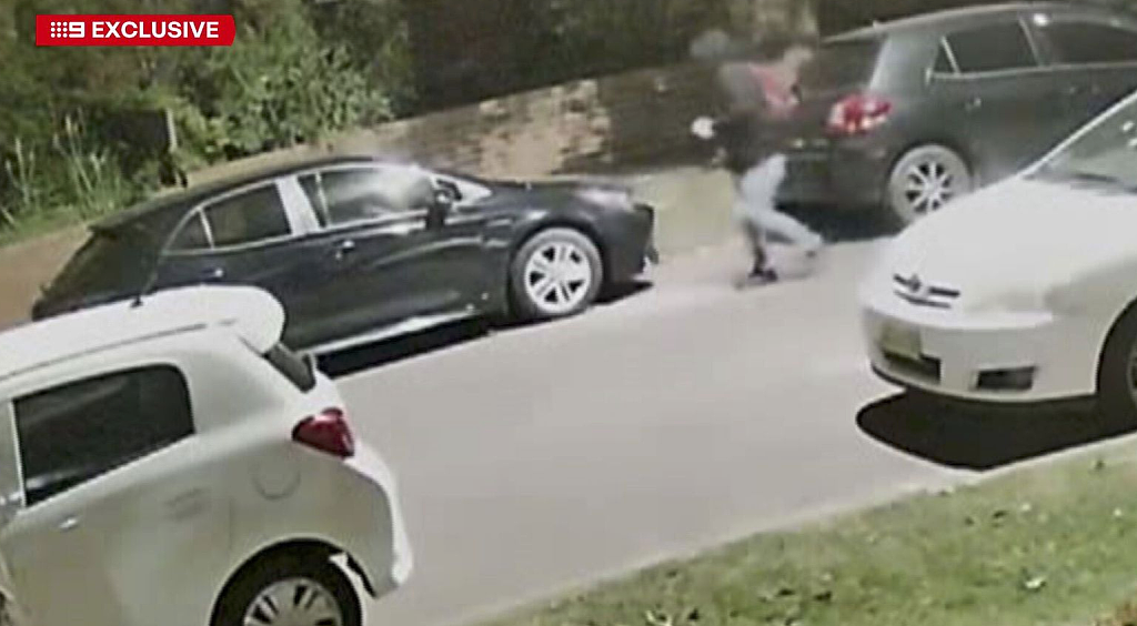 这个戴着头罩的割轮胎恶徒仍然在逃。新州警方正在调查此事件。任何在Caroline、Mashman、Northcott、Vivienne Streets有相关行车记录仪影像或任何信息的人,请联系警方。