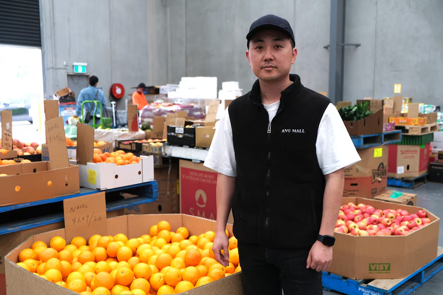 安吉拉·王在布莱顿拥有一家小店,但她通过自己运营的微信群销售大部分新鲜农产品。(ABC新闻:Jenny Cai)