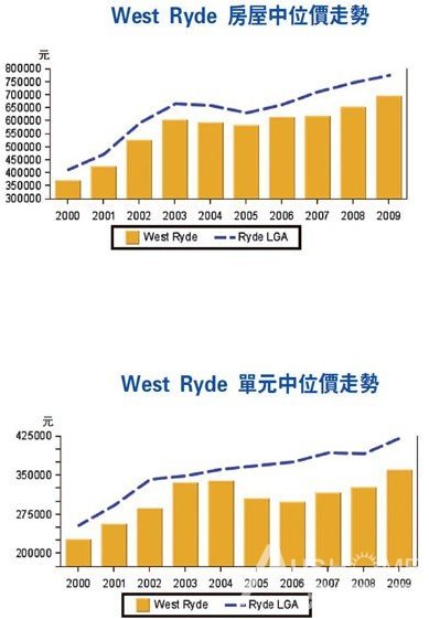 West Ryde火车站附近建有时尚雅柏文楼房和红砖单元楼房,周围有商铺。 悉尼西北城区 配套完善 房价稳步向上 与Eastwood(伊士活)只相距10分钟车程的West Ryde,同样是华人和韩国人的聚居地,也是进去西北山区(Hill District)的必经道。在West Ryde居住,可体会生活上的便利,区内的火车站旁设有商场和街铺,邻近的Eastwood亚洲店铺和食肆林立,而Top Ryde的全新购物中心更设有Myer等大型店铺。虽然West Ryde的中位房价低于Ryde市政区,但过去几年均稳步上升,并吸引不少年轻的首置人士在该区物色安乐窝。 独立屋中位价逾80万 低于Ryde市政区 West Ryde距离悉尼中央商业区(CBD)西北面约15公里,邮区编号2114,由Ryde市政府管辖。West Ryde的东面与Ryde毗邻,南面是Meadowbank和水滨城区Melrose Park,西面为Ermington、Rydalmere和Dundas,而北面是Denistone West、Denistone和Eastwood。麦格理大学位于West Ryde东北面,相距大约20分钟车程。 人口逾1.1万人的West Ryde,面积约4平公里,相当于每平方公里住了2800人左右,而公园占去全区面积一成多。 区内除了保留了很多1900年代兴建的房屋(House)和红砖楼房(Unit),亦有新落成的时尚雅柏文(Apartment)楼房,部份更可眺望巴拉玛打河和悉尼奥林匹克公园。近年来,不少年轻家庭选择搬到West Ryde居住。 4成住宅属雅柏文 在West Ryde,独立屋占53%,较悉尼平均的64%为低;雅柏文和单元占39%,较悉尼平均率高出近一倍。相连屋(Semi)和排屋(Terrace)占4%,低于悉尼平均的10%。 按年度计算,West Ryde的房屋中位价自2006年重展升浪(06年升5.2%,07年升0.8%,08年升5.5%,09年升6.7%)。雅柏文/单元中位价则在07年反弹,在07年至09年分别上升6.1%、3.5%和10.1%。不过,自2000年以来,West Ryde的中位房价一直低于Ryde市政区。 参考RP Data的资料,今年6月,West Ryde的房屋中位价是832,500元,较 Ryde市政区的907,500元低8.3%;雅柏文/单元的中位价为400,000元,较Ryde市政区的460,000元低13%。 今年截至6月为止,West Ryde的中位屋价累计大涨16.7%,而单元中位价亦升了9.4%。