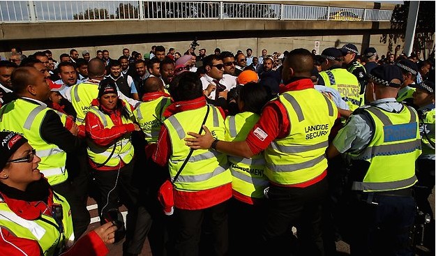 抗议期间爆发混战,大量澳洲联邦警察和机场保安试图控制愤怒的司机们。重大事件响应小组的警察被叫到现场控制抗议者,抗议者们在抵达航站附近聚集。