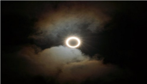 周五上午7点(澳洲中部标准时间)开始,太阳开被“咬开”一个缺口,而一小时后,太阳已经几乎被月球完全遮挡,在澳洲中部的天空中形成一个火环。这个红彤彤的光环持续了整整四分钟,太阳才慢慢从月球身后移出来。