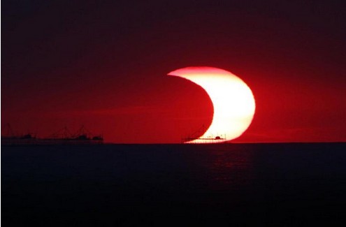 图2:在Manila Bay拍摄到的日环食宛如一弯新月