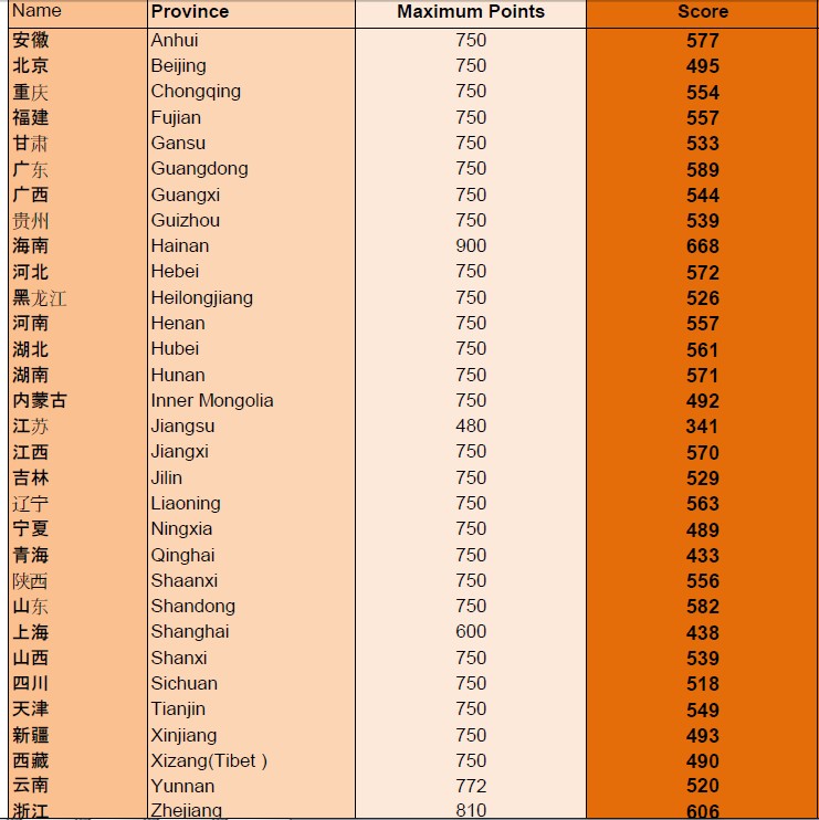 中国高考成绩:必须高于各省市的重点一本线,根据各地情况要求不同(请参照上表)。