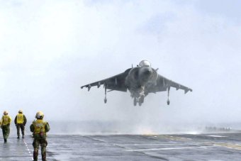 丢下炸弹的是AV-8B鹞式战斗机(图片来源:美联社)