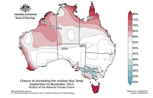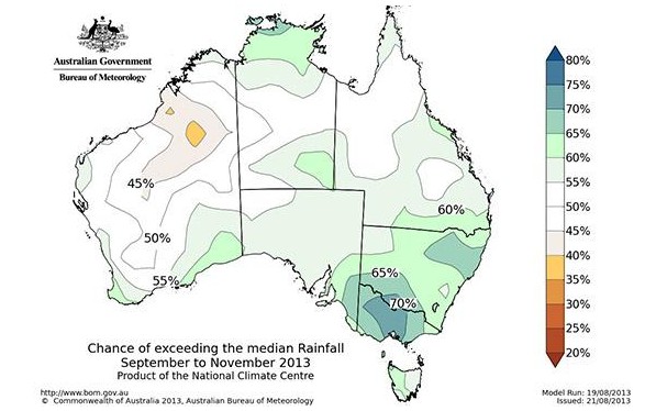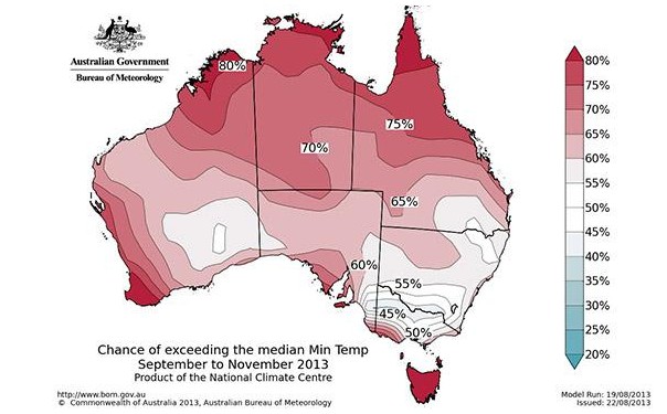 除了最北和最南部地区外,这个州的其他地区已经是春意盎然了。Cape York的降雨量将与往年差不多,但更热的可能性却高达80%。与此同时,布里斯班和南部地区则有些许可能出现降雨量超均值的状况。