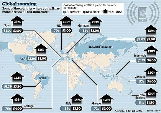 澳洲电讯(Telstra)已经向其1530万左右手机用户发出通知,将对他们的国际漫游费用做出调整,澳洲游客在海外旅游接听国际来电时,将被迫收取高达5倍的漫游资费。此外澳讯还大肆宣扬此次调整对用户来说是一个福音,因为这意味着漫游时无论接听还是拨打电话的费用是一致的。
