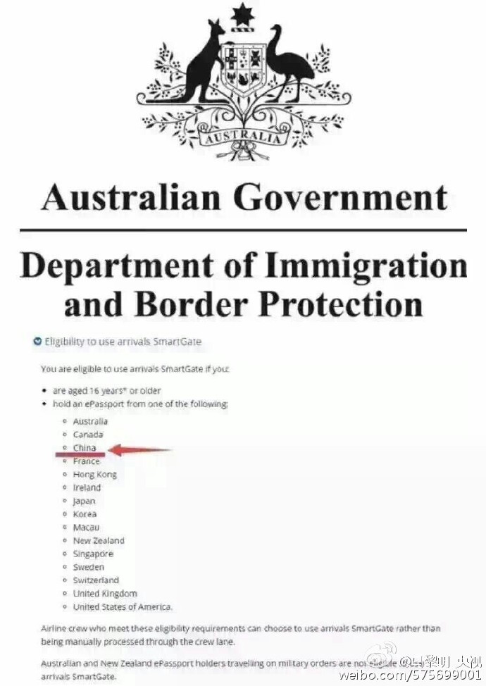 澳大利亚政府刚刚宣布,6月20日起,中国护照在澳洲入境,将永久享受与英国、美国、加拿大、新西兰等发达国家护照的同等待遇!所有中国护照以后入境都不用排队,直接2分钟自助通关,持有效电子护照的中国内地居民可永久使用“智能门”自助通关系统。