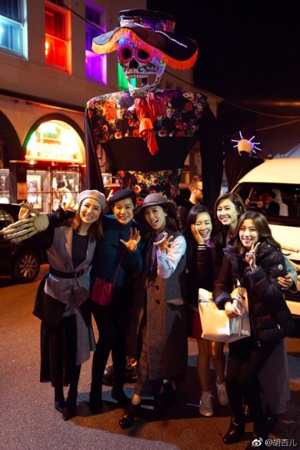 8月1日,孕妈胡杏儿微博晒出与胡定欣、黄智雯、李诗韵、姚子羚等TVB花旦齐聚澳大利亚的照片,配文:“早!”