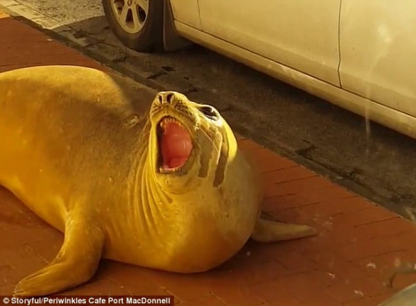 据《每日邮报》报道,本周一晚上10点左右,南澳小镇Port MacDonnell的宁静被狗吠声打破,居民Kirby Carrison称自己的狗对着车道狂吠,“我就让我老公出去看看,谁知他回来告诉我,快拿上相机,你肯定没法相信这里有啥。”Carrison称自己过去一看,居然是一头巨大的海狮出现在车道上,重量大约是600公斤。