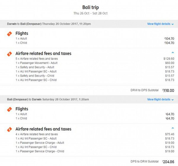 达尔文居民NT Sawyer说:“我因为经常出差,所以已经习惯支付手续费了,不过这次去巴厘岛,当我给我儿子买票时,发现他的票价竟然和我一样。而一些家庭并不经常出游,所以他们买票时,不会轻易注意到自己正在支付一些不必要的费用。”