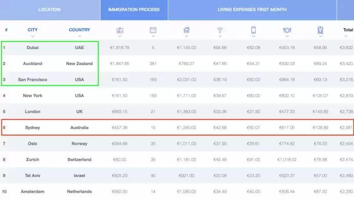 因此,我们不难发现:对移民来说,花销昂贵的城市,宜居程度也相对较高。可能这就是所谓的“一分价钱,一分货”吧……