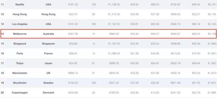 而碰巧的是,维也纳在新移民定居最昂贵榜单中,也排名靠前——第27位,新移民首月花费2557.62澳元。