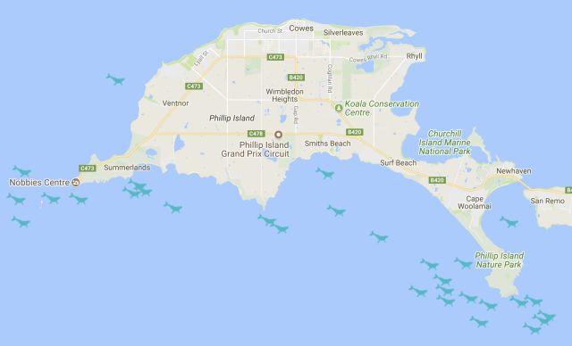 通过这些数据的统计,你可以找到一个相对集中出现的区域前往。最新的记录显示6.13号 早上11点15分,就有三只驼背鲸出现在Cape Woolamai Cruise朝东的角落