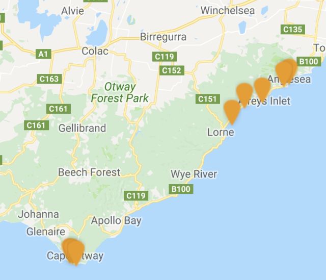 Great Ocrean Road也同样统计了6月开始所观察到鲸鱼数量和被观察点。通过这些数据的统计,你可以找到一个相对集中出现的区域前往。