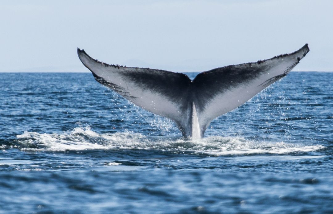 露尾:座头鲸喜欢把尾鳍露出水面跟游客打招呼