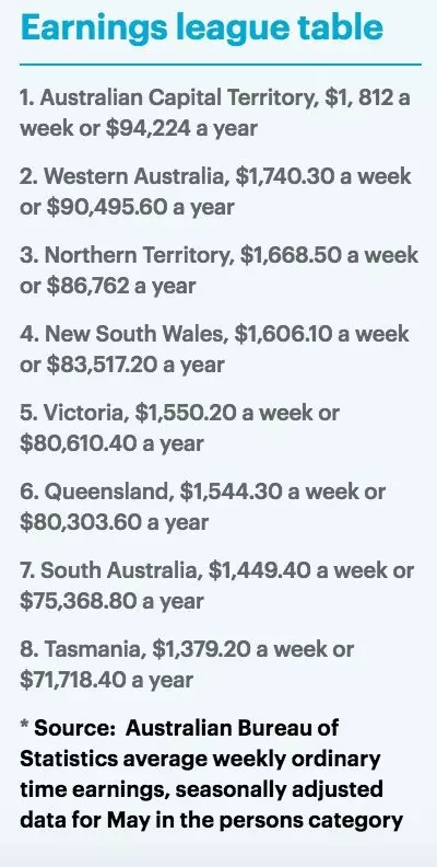 堪培拉人均税前周薪1812澳币,税前年薪94224澳币惊呆了很多人。