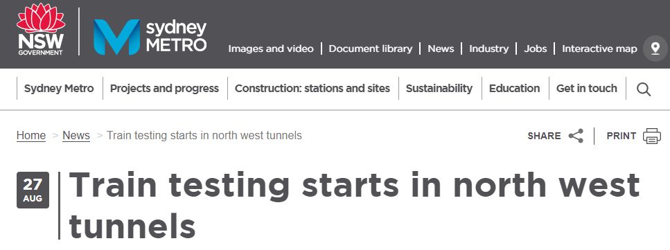 除了墨尔本,悉尼西北地铁线也在前几天开始了地下隧道的通车测试!