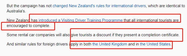 此外,Sarah议员还强调一点:世界上其他很多国家都已经实行了国际驾照限制政策,包括澳洲邻国新西兰,同样也开始对国际驾照持有者进行严控。