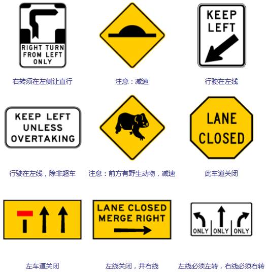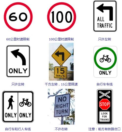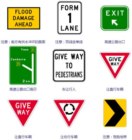 与这次的提案无关,在澳洲驾车,请严格遵守澳洲的所有交通法规,为了自己,也为了他人的人身安全。以下交通指示牌的含义请一定熟记: