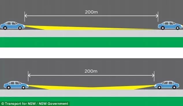 当离前方或者对面车辆200米以外的距离可以使用远光灯。