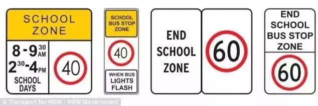 澳洲交通法明文规定,在School Zoon也就是学校所在区域,需要仔细阅读指示牌,在学生上下学的时间段内,车辆限速40公里。