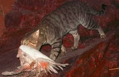野猫在食用后,