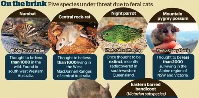 澳洲野猫直接威胁到了100多个物种的生存,