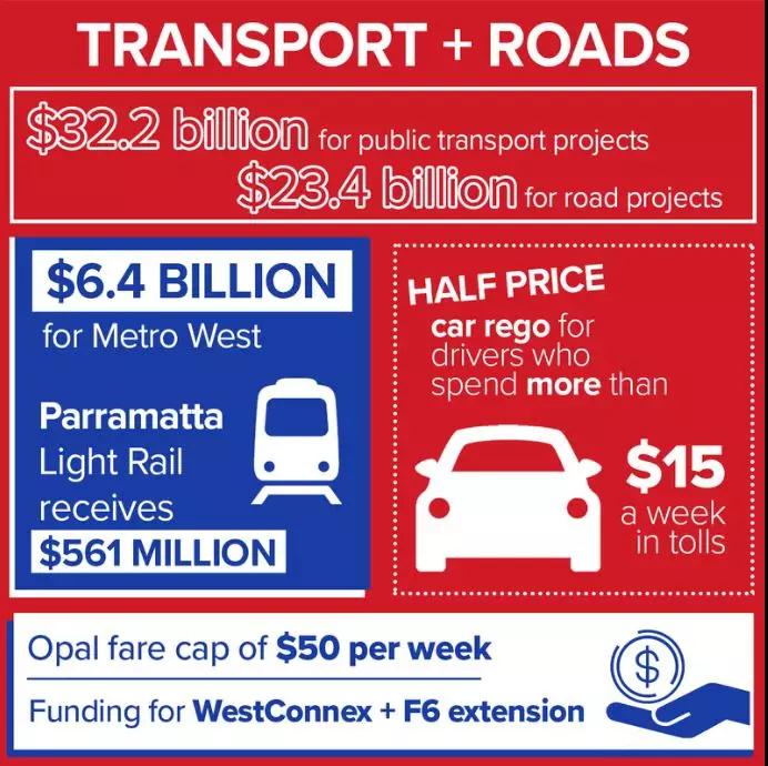 在全部的基础设施支出中,公共交通领域将占近六成,包括用于加速悉尼城铁西线施工进程的64亿澳元。