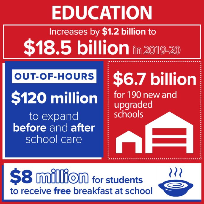 教育将是此次预算案的一个重点,2019-20年将投入185亿元,与此前一年相比增加了12亿元。
