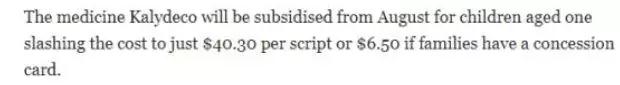 然而从今年8月起, 澳洲即将为年满一岁以上的儿童提供优质补贴,就是把这种药纳入药物福利计划里。