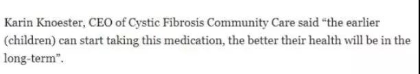 囊性纤维化社区首席执行官Karin Knoester表示: “儿童越早开始服用这种药物, 他们的长期健康状况就会越好。”