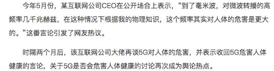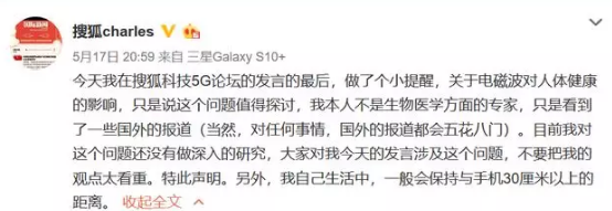 张朝阳也很快表示收回“5G对人体有危害”的言论。