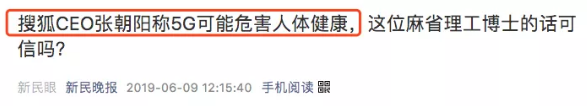 连麻省理工的博士,搜狐CEO张朝阳也声称:5G可能危害人体健康。