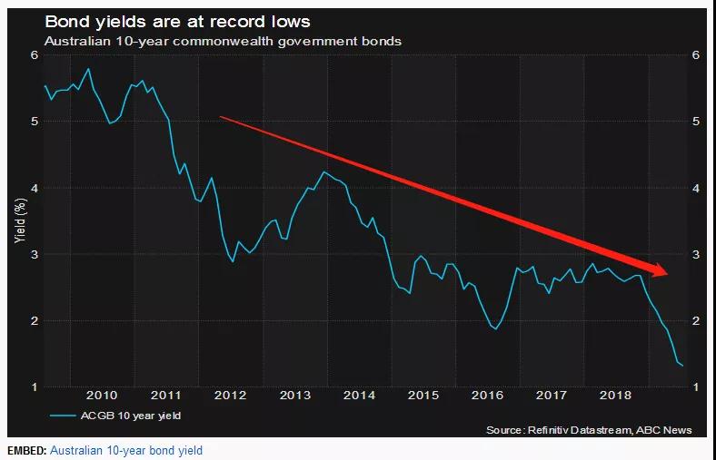 受澳元下跌的影响,澳洲10年期债券的收益率也降到了有史以来的最低水平!