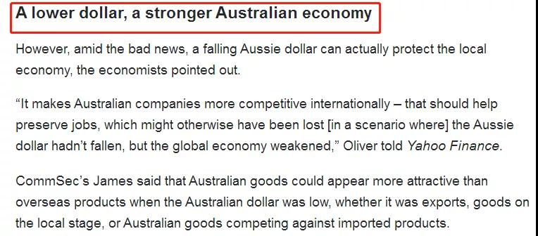 从宏观角度来说,澳元汇率下跌对澳洲的经济是有好处的。