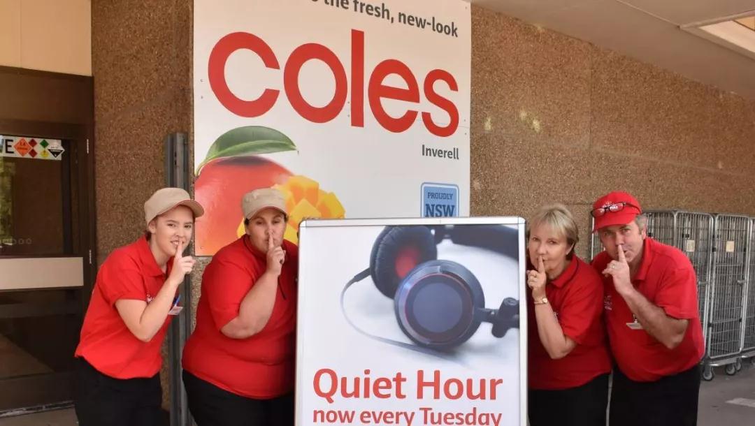 在这每周二的上午,澳洲两大超市Coles跟Woolies将联手合作,将澳洲部分门店降低灯光,关闭音乐、收音机和广播系统,甚至连烤箱蜂鸣器也一并关闭。