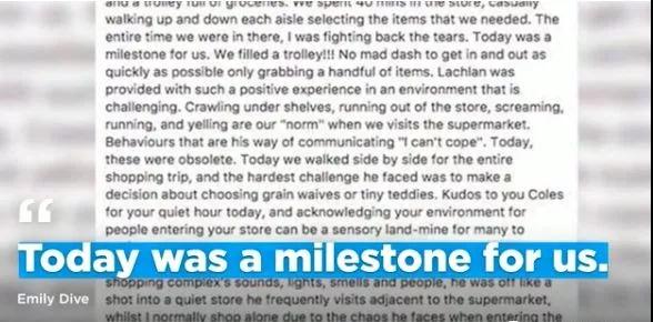 Emily 还在 Facebook 页面上发表了一篇文章,称赞 coles 的Quiet Hour计划。她说: