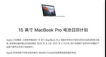 6月,苹果电脑电池遭受了一次召回活动,2015年9月至2017年2月之间售出的老款苹果15寸MacBook Pro型号的电脑,电池可能会过热并存在消防安全隐患。