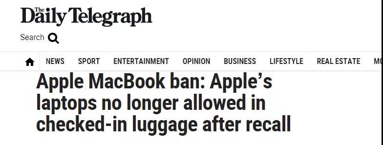 Daily Telegraph:苹果电脑被禁止——禁止出现在托运行李内!