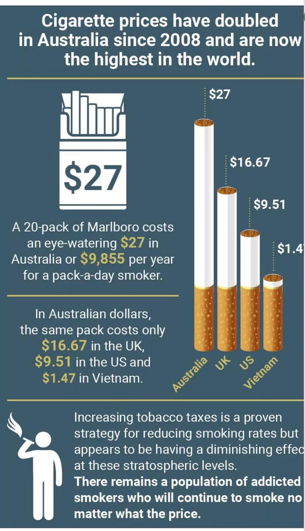 想抽烟?简直是奢侈,悉尼的平均烟价已远远超过美国、英国,平均一盒烟约:$27澳元!