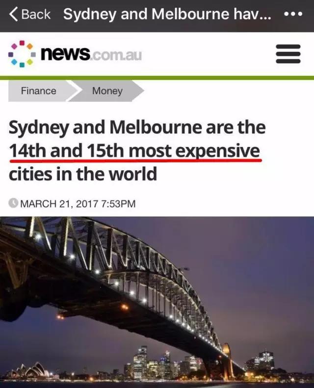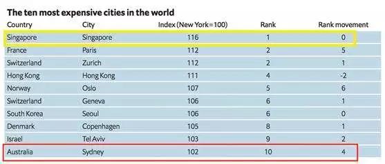 结果显示:悉尼,高居“最贵城市”榜单第十位!