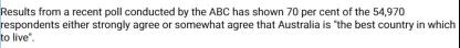 但这些都远不如ABC这项民意调查来得让人兴奋和对澳洲心生向往。