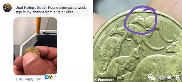 除此之外,还有一种更常见的错误——1澳元硬币上的袋鼠长出了“兔耳朵”,根据保存状态而定,最高价值30澳元。