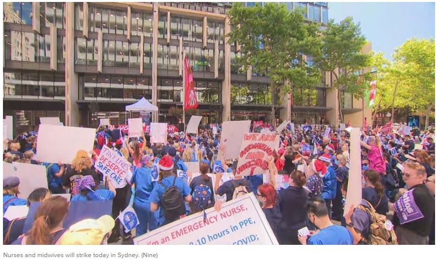 第9新闻报道,根据新州护士和助产士协会(NSW Nurses and Midwives Association)的消息,罢工从24日早班开始,按照计划,参与者于当日11时30分左右在 悉尼海德公园(Sydney's Hyde Park)举行集会。