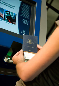 位于检查护照柜台的SmartGate其实是一个计算机系统, 旅客只需要把插入电子护照,并回答预先设定的保安问题, 就可快速过关。此举实在省时方便, 而且可减少人为上的疏忽。SmartGate也会就其它护照上的特色作出检查, 如签证印章、出入境资料等。之后系统会发出一张票, 旅客需凭该票走前, 由机器确认相貌是否与护照上相照相吻合。一旦身份被确认, 旅客就会再获发另一张票, 然后就可认领行李。