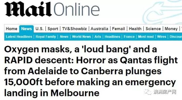 Dailymail:面罩脱落,一声巨响后飞机骤降15, 000英尺,在墨尔本紧急降落。